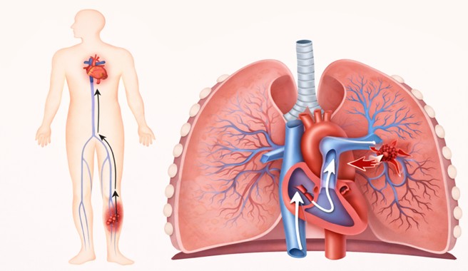 ⬆深部靜脈炎血栓流至左肺引起肺栓塞