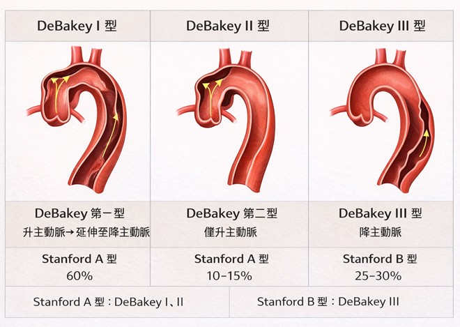 4. 主動脈剝離(約 3–5%):血管硬化後內膜破裂,血液流入而導致內膜與管壁剝離,造成心臟突停,與長期高血壓密切相關。